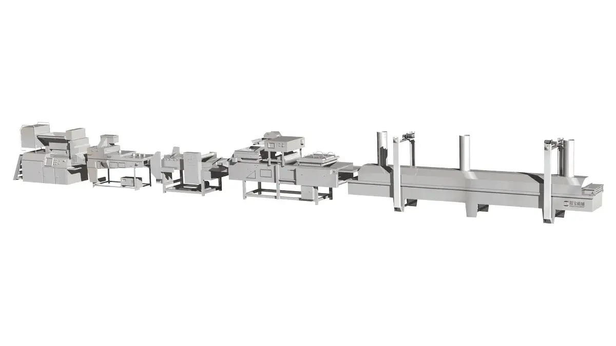 Línea de Producción de Empanizados y Rebozados (Modelado, Rebozado, Empanizado, Freído, Enfriamiento)